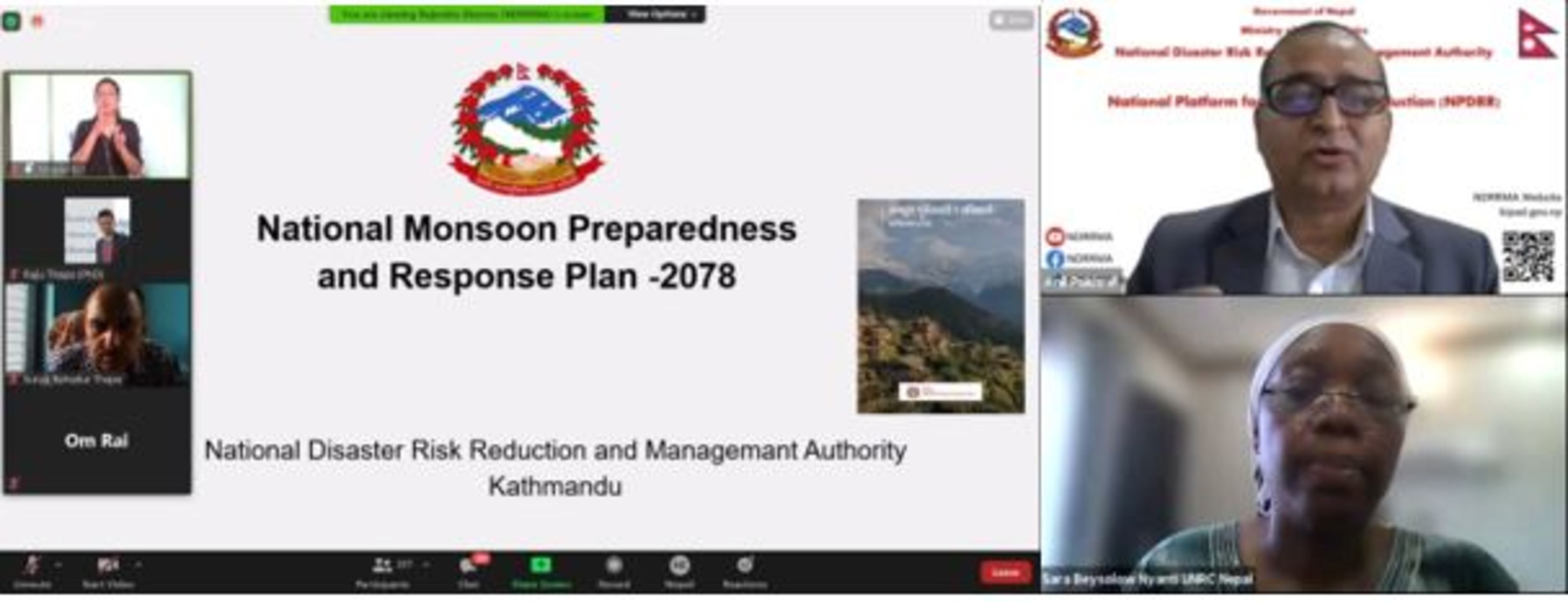 - Mr. Rajendra Sharma, Under Secretory and Mr. Beda Nidhi Khanal, Under Secretory from NDRRMA gave presentation on “National Monsoon Preparedness and Response Plan -2078”. The presentation was about disaster scenario in Nepal, monsoon outlook verification and disaster impact (2010-2020), caseload, use of BIPAD portal for monsoon preparedness and response, coordination and collaboration, monsoon preparedness and response at national and provincial level and the challenges during the plan.