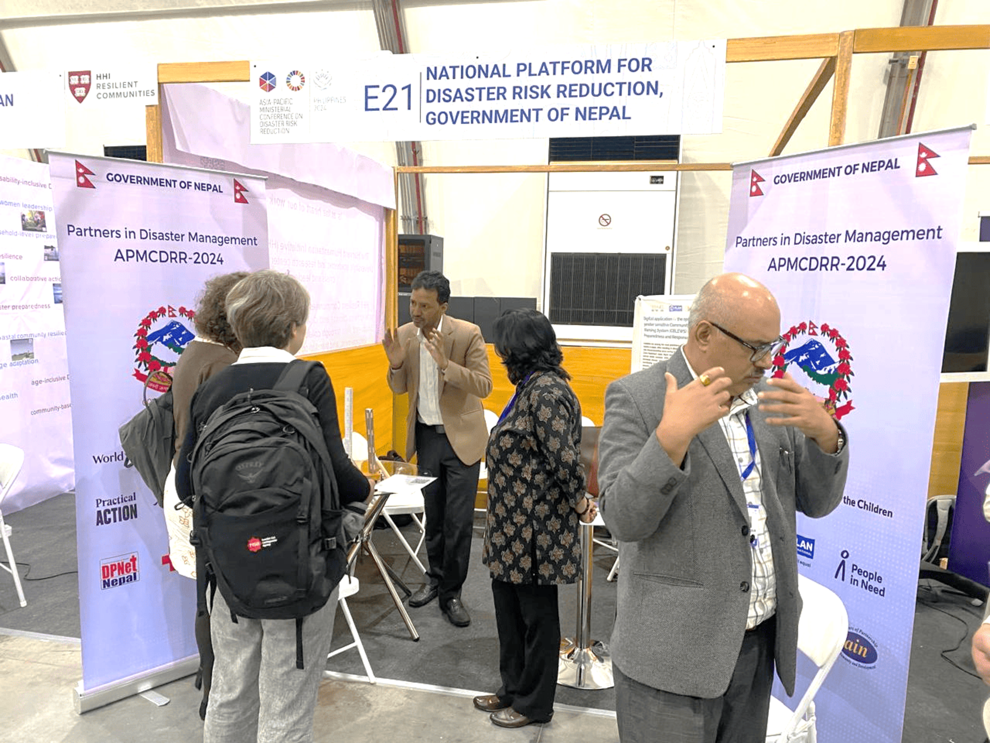 During the APMCDRR 2024, various participants from Nepal actively engaged in plenary sessions, panel discussions, and ignite stages, sharing their experiences and best practices in DRR. Nepal’s exhibition booth attracted hundreds of visitors who were particularly impressed by the country’s efforts to publish DRR documents in accessible formats like braille and demonstrate innovative tools like the earthquake shake table. The shake table, which simulates the effects of earthquakes in relation to soil strcture on buildings of different heights, was praised for its ability to simplify complex engineering and geological concepts, making them accessible to the general public.