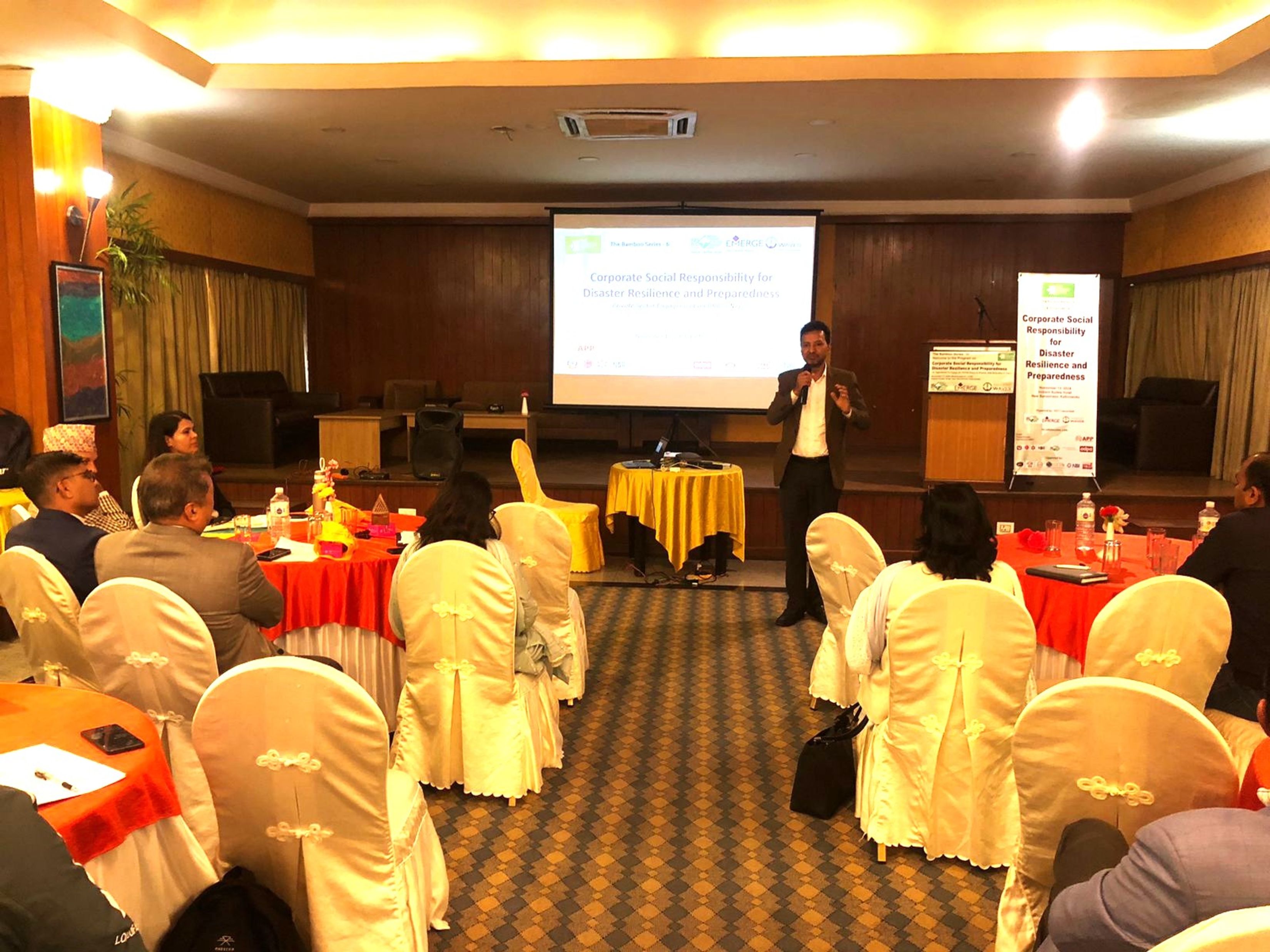 The event commenced with discussions on the evolution of CSR, as highlighted by Dr. Balram Chapagain from Tribhuvan University. He explained the transition of CSR from traditional philanthropy to a modern framework emphasizing sustainability and accountability. Dr. Chapagain stressed the importance of integrating DRR into CSR activities, particularly in pre- and post-disaster phases, through community-focused and Gender Equality and Social Inclusion (GESI) initiatives. He recommended policy changes, such as mandating DRR budget allocations within CSR programs and fostering cross-sector collaboration to enhance disaster resilience. Ms. Merina Ranjit, Chief Operating Officer of the Chaudhary Foundation, highlights on the private sector's significant contribution to Nepal’s GDP and workforce. She emphasized the importance of strategic allocation of CSR funds to address vulnerabilities and support resilience-building initiatives. Citing examples like DRR messaging on consumer goods packaging, she advocated for flexible CSR funding to enable innovation and targeted investments in research and disaster preparedness. From the government perspective, Dr. Bhisma Kumar Bhusal, Joint Secretary at the Ministry of Home Affairs, emphasized that CSR should focus on dignity and security, going beyond philanthropy. He highlighted the private sector's potential to exceed government contributions in disaster scenarios by investing in resilient infrastructure, advanced technology, and pre-disaster interventions. He also proposed mandatory insurance schemes and business continuity plans to strengthen disaster preparedness in the private sector.