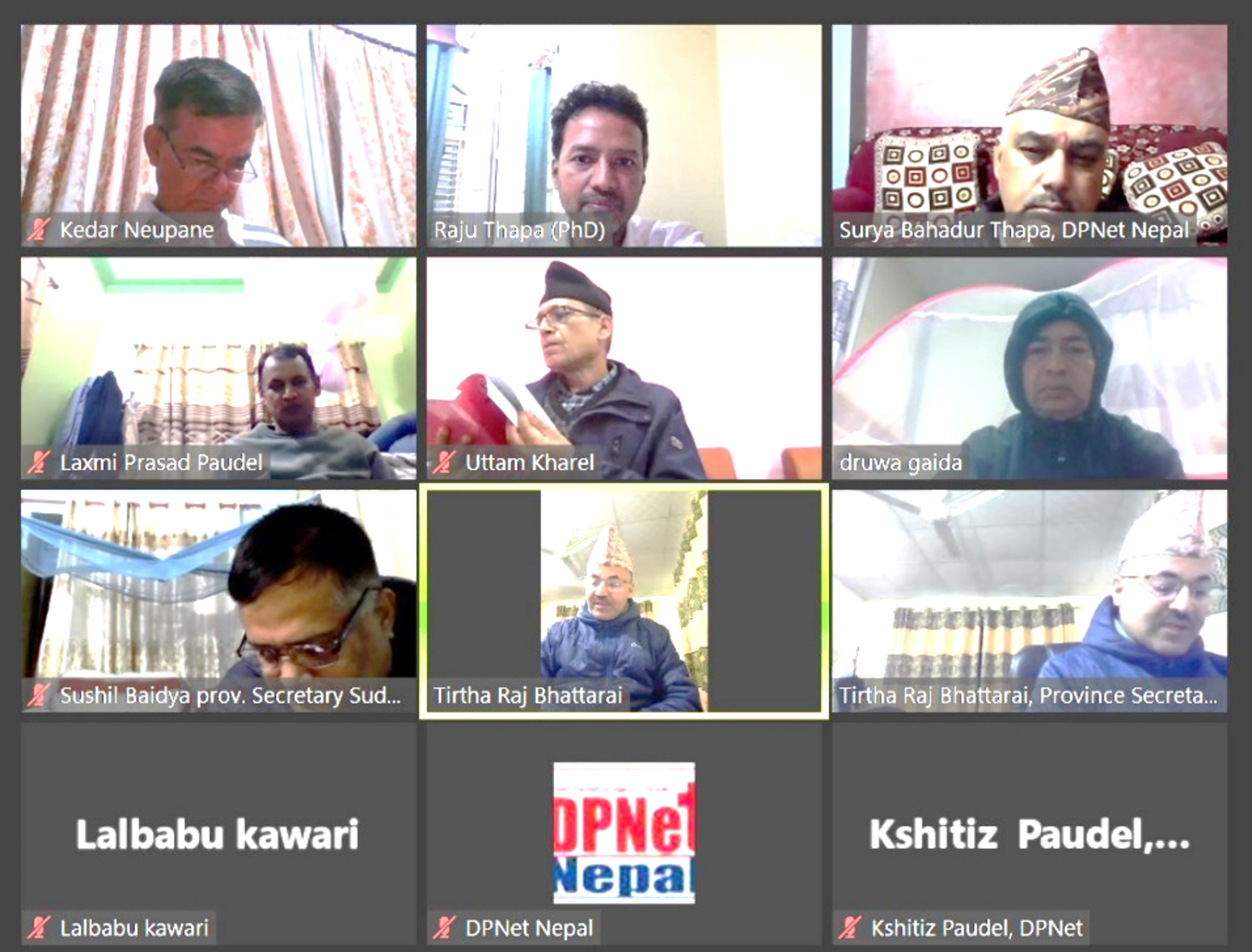 On December 17, 2023, DPNet Nepal supported by Mercy Corps Nepal, organized an online discussion on “Development Partners' Possible Contribution to Provincial DRR Initiatives” to discuss the probable areas of contribution and partnership of the development agencies in the provincial DRR initiatives.