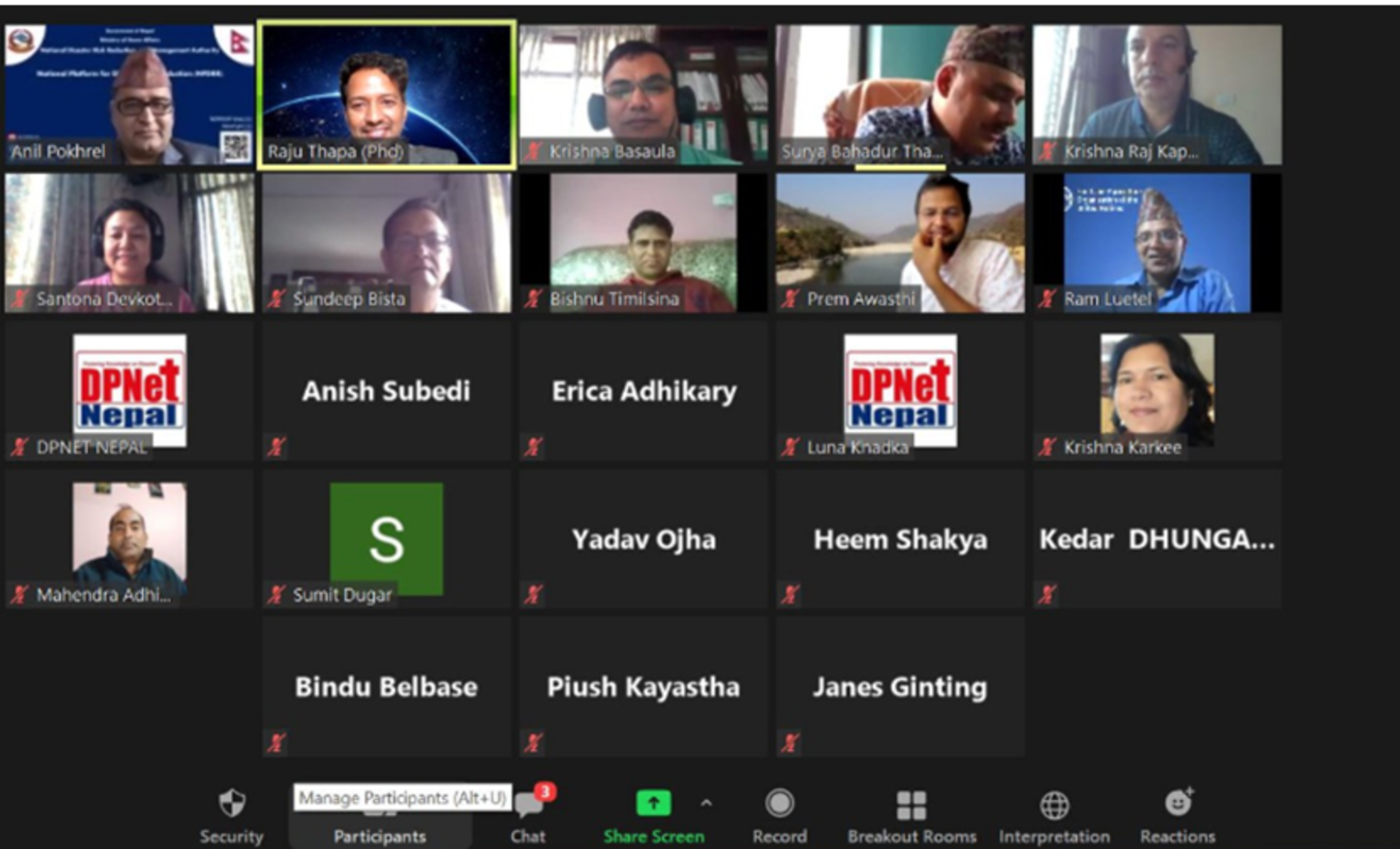 With its aim to operationalize the NPDRR Guideline, the Subjective Committee meeting of Donor/UN Agencies was organized by DPNet-Nepal on 20th July 2021. The program was organized under USAID/Tayar Nepal Capacity Enhancement for DRRM project. The program was chaired by Mr. Anil Pokhrel, Chief Executive of National Disaster Risk Reduction and Management Authority (NDRRMA). Mr. Surya Bahadur Thapa, Chairperson of DPNet-Nepal welcomed all participants and highlighted the objective and schedule of the program. He briefly shared the project activities in relation to the NPDRR and moderated the program. Altogether 33 participants(8 women and 25 men) joined the program.