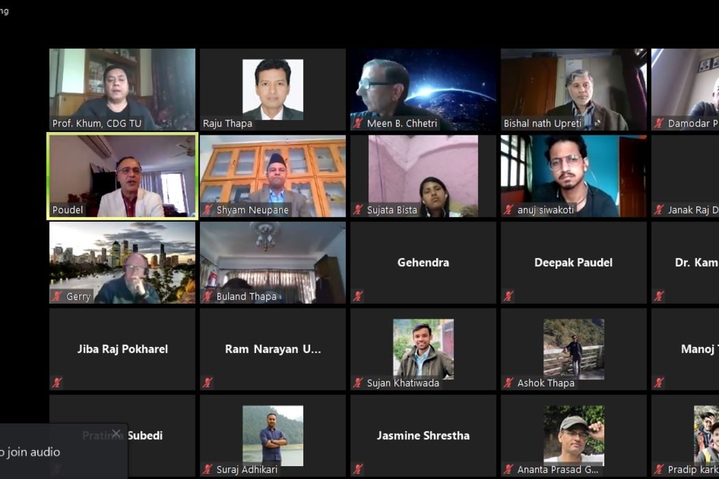 A talk program entitled "Covid-19 Pandemic: Experience Sharing from Australia & Nepal and Way Forward" was organized by NCDM in collaboration with DPNet-Nepal, NAST and Department of Geology, TU on 5th May 2020.