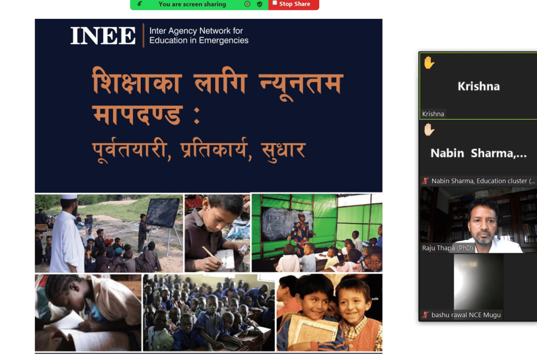 DPNet Nepal organized a virtual discussion session on "Minimum Standards for Education: Preparedness, Response, Recovery" on October 4, 2023, via an online platform. Serving as the Focal Point for the Sphere Standard in Nepal, DPNet collaborated with the National Campaign for Education (NCE) and Save the Children to organize this virtual discussion program focusing on Minimum Standards for Education in Nepal.