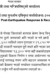 The document concerns the Integrated Action Plan for post-earthquake response and recovery in 2072. It addresses the challenges posed by the devastating earthquake of magnitude 7.6 on April 25, 2015, resulting in significant loss of life and property. To effectively tackle and overcome these challenges through systematic reconstruction and new construction, the Operational Procedure was approved on Baisakh 25, 2072, by the Honorable Prime Minister, the Parliament, and the Constituent Assembly during an emergency session.