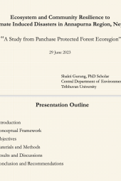 This presentation incorporated the conceptual framework of the study, its objectives, the materials, and methods while conducting the study, the results and discussions along with the recommendations for the future in the area. This study aims to show an interlinkage between ecosystem management and hazard vulnerability reduction in the context of mountainous regions of Nepal.