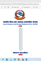 This report provides a comprehensive overview of the involvement of the local level in disaster and climate resilience planning, focusing on the Neelkantha municipality. It begins by introducing the municipality's background and highlights its vulnerability to various forms of disasters such as earthquakes, floods, landslides, lightning, road accidents, fires, winds, droughts, and animal threats (such as monkeys and foxes). The report also addresses the negative impact of climate change as perceived by the local community. The primary goal of this plan is to mitigate the loss and risks associated with disasters, and to address the identified issues through a participatory process, resulting in a comprehensive plan. The plan aims to enhance livelihoods, as well as integrate disaster risk reduction activities into development plans.