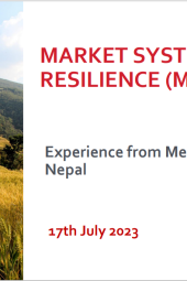 During the policy dialogue on Market System Resilience organized by DPNet Nepal, Mr. Deepak Aryal, Mercy Corps Nepal presented on MSR from the perspectives of Disaster Risk Management and the interconnectedness of markets with social, cultural, and environmental contexts. He discussed the challenges faced in their practice, including limited risk fragility checks, low financial literacy, discrimination, limited outreach, and weak market linkages. Mr. Aryal presented case studies, highlighting the effectiveness of the nexus approach in integrating disaster risk reduction and market system development. He also mentioned successful interventions in the sugarcane and dairy production sectors.