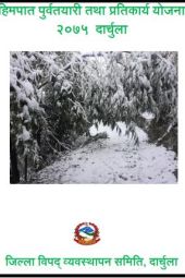 The Avalanche Preparedness and Response Plan 2018 for Darchula provides a comprehensive framework for managing avalanche-related emergencies. It includes sections on the general purpose and specific objectives, a map of the district, and an overview of local disasters, including snowfall. The plan outlines affected areas, access points, disaster scenarios, sectoral objectives, and preparatory priorities. It details the ability to mobilize resources, available relief materials, responsibilities, and response protocols. Additionally, it lists available heavy equipment for search and rescue operations.