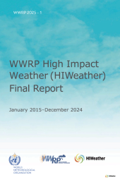 This is the World Weather Research Programme (WWRP) – HiWeather Final Report, designated as WWRP 2025-1, covering the programme period from January 2015 to December 2024. Published by the WMO in Geneva in 2025, the 39-page digital report falls under specialized programme publications. It likely synthesizes a decade of research and outcomes focused on high-impact weather phenomena, including improved forecasting techniques, risk reduction strategies, and recommendations for future research to better anticipate and manage severe weather events globally.