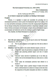 This is a document on acts made to amend and consolidate laws relating to Environment. It covers various topics like environmental study, control of pollution, the provision relating to the protection of national heritages and environment protection areas, fines and compensation, and other related miscellaneous provisions in the local level.