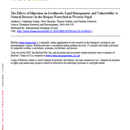 The Effects of Migration on Livelihoods, Land Management, and Vulnerability to Natural Disasters in the Harpan Watershed in Western Nepal