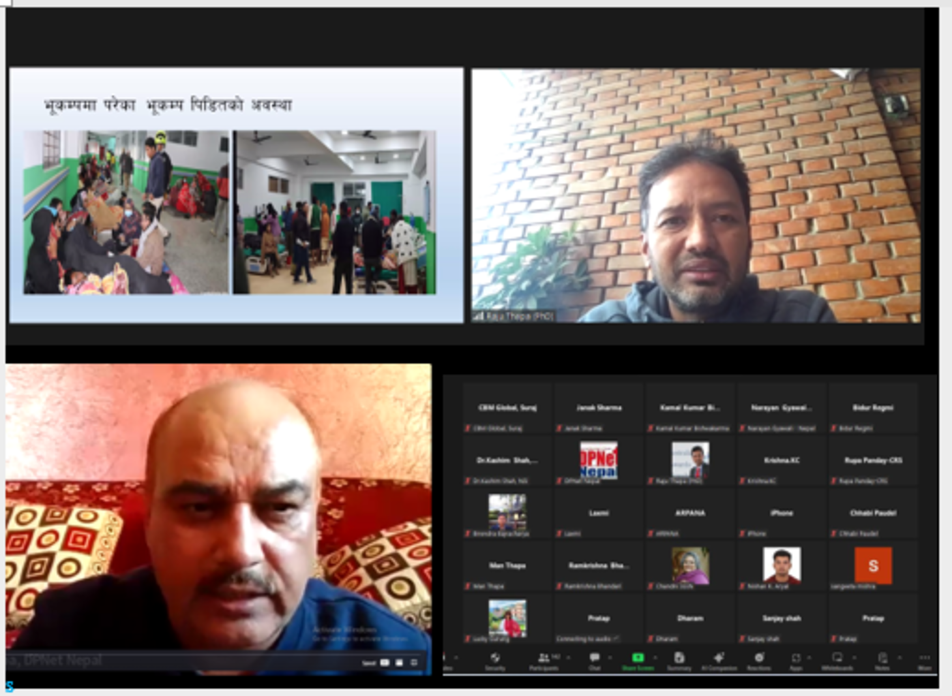 On November 4, DPNet organized a virtual discussion in response to the earthquake in Jajarkot, which occurred on November 3, 2023. The meeting was a significant gathering, with over 150 stakeholders participating and sharing their insights. The primary focus of the discussion was to strategize the immediate actions required in the wake of the disaster and to ensure an effective and coordinated response. The meeting has been decided that DPNet will take the lead in gathering information to compile a daily situation report, which will serve to minimize the duplication of efforts among the involved parties. Additionally, there is an immediate need for the mobilization of field staff to assess the actual on-ground situation from day one. DPNet will also put together a team dedicated to data collection and identifying the specific needs of different clusters affected by the earthquake.
