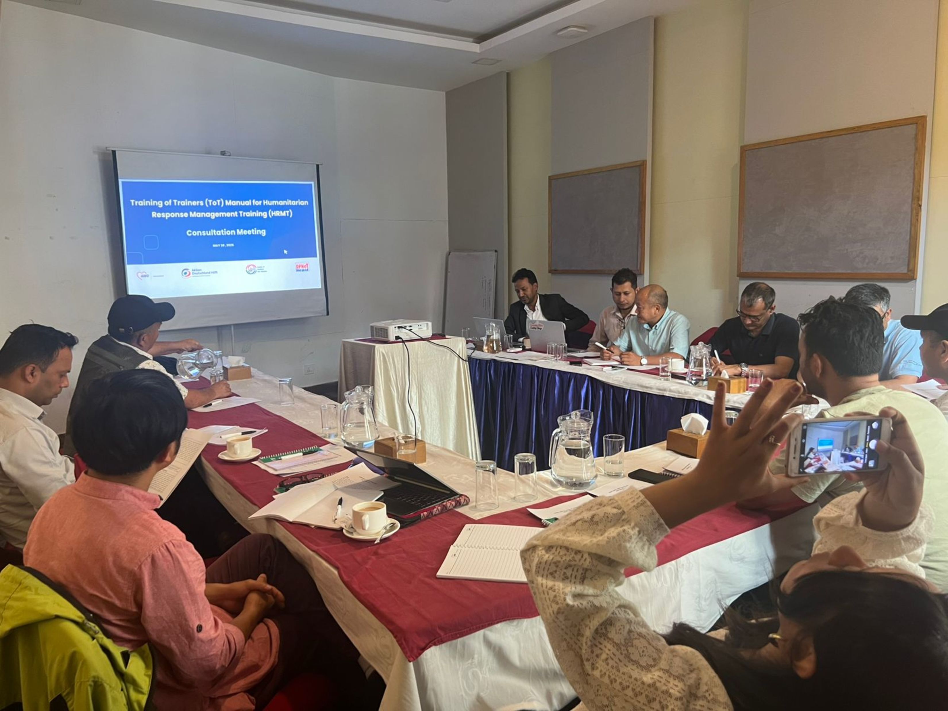 DPNet, in collaboration with the Institute of Himalayan Risk Reduction (IHRR), facilitated a stakeholder consultation workshop on 30th May 2025 at Kathmandu, to discuss and refine the Training of Trainers (ToT) Manual for Humanitarian Response Management Training (HRMT). The workshop was technically supported by AWO International and Aktion Deutschland Hilft. The event brought together humanitarian practitioners, disaster response experts, trainers, and representatives from International and National Non-Government organizations to discuss and provide input on the draft ToT manual. The objective of the consultation was to ensure that the manual effectively addresses key issues in humanitarian response management and remains practical for training future responders. Considering the importances of the two pillars of DPNet; Knowledge Management and Capacity Building, DPNet has planned to develop the training manuals and organize trainings on a regular basis. Mr. Suraj Gautam highlighted the objective of the program and requested active participation from the participants while Dr. Raju Thapa presented on the skeletal framework of the ToT Manual.