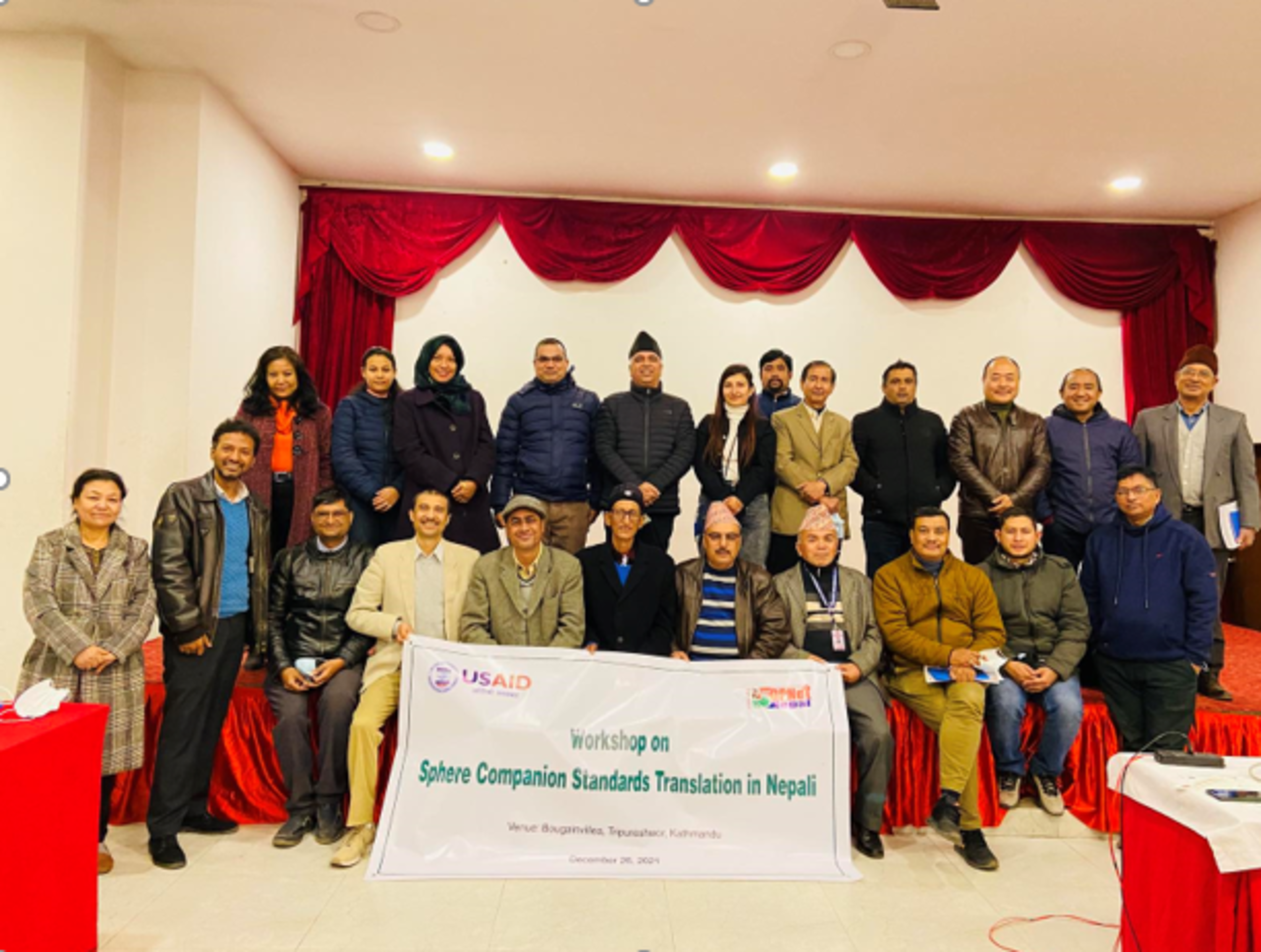 Dr. Raju Thapa, Vice Chairperson of DPNet and Coordinator of Sphere Nepal shared about the importance of six Sphere Companion Standards in Nepalese context. He expressed his sincere thanks to USAID/Tayar for providing financial support to translate three companion standards namely 'Humanitarian Inclusion Standard', 'Minimum Standard for Market Analysis' and 'Minimum Economic Recovery Standard'. He also expressed sincere thanks to Atullya Foundation for completing translation work in the stipulated time. He further informed that the electronic version of the draft translated copy was shared to relevant experts and received feedback was incorporated. He requested all the workshop participants to have a look at translated copy and provide feedback as early as possible. The Translator Consultant, Mr. Ram Gurung shared his experience on translation work and challenges he encountered while performing this task. Peer Reviewer Dr. Meen Bahadur Poudyal Chhetri, also shared his experience.
