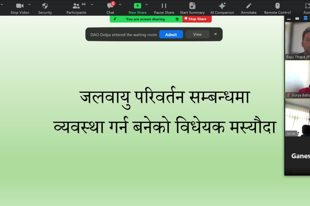 DPNet organized a virtual discussion program on March 14th to solicit feedback on the draft Climate Change Act introduced by the Nepal Law Commission. The event saw the participation of 71 stakeholders, including civil society organizations and climate change experts. The program was chaired by Mr. Surya Bahadur Thapa, Chairperson of DPNet, who emphasized the importance of the draft Climate Change Bill. He highlighted the ongoing virtual discussion on DPNet's webpage to collect further feedback on the draft act and encouraged participants to contribute their written feedback.