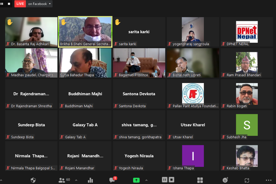 The virtual discussion program on Short term and Long term Program in Disaster Risk Reduction and Management (DRRM) was organized jointly by DPNet-Nepal, Bagmati Province and Province Affairs Committee.