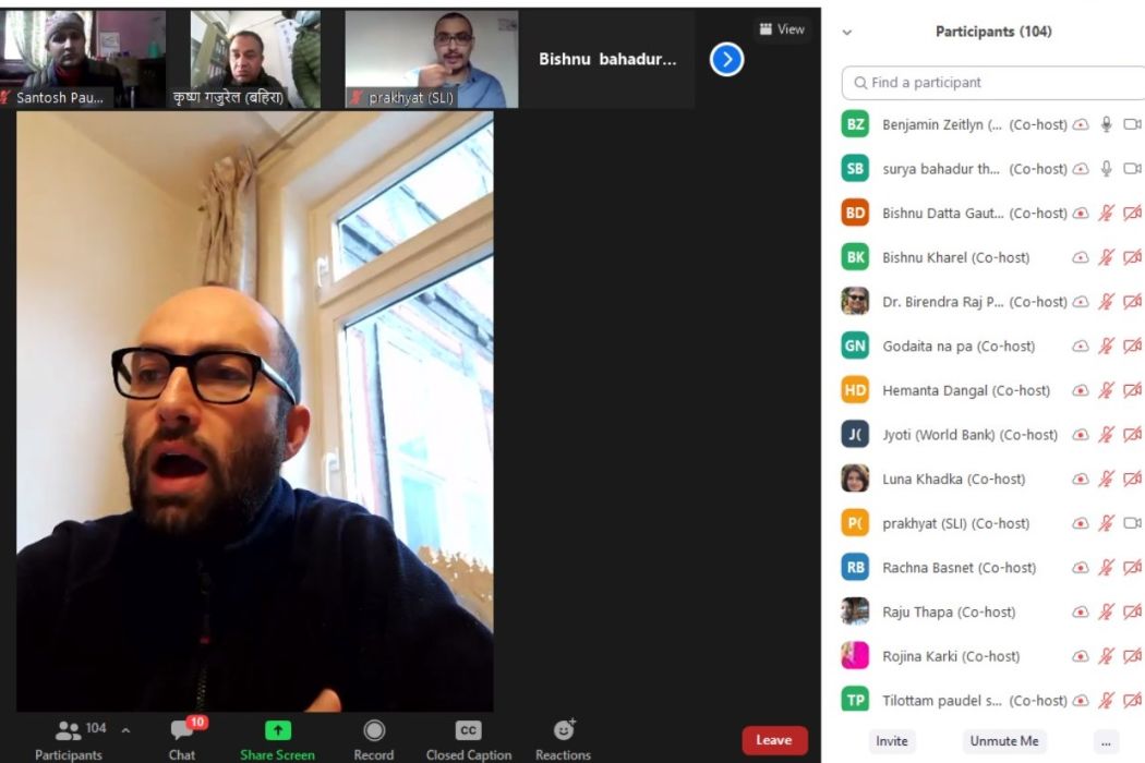 A Virtual Discussion Program on Exploring the Potential of Shock-Responsive Social Protection in Nepal was coordinated by DPNet-Nepal and organized by Save the Children International, Atullya Foundation, CBDRM Platform, IFRC, and SPCSN on December 23, 2020. The program had 104 participants and was graced by the presence of Honorable Dr. Ram Kumar Phuyal, Member of the National Planning Commission (NPC), as the Chief Guest, and Mr. Bishnu Dutta Gautam, Joint Secretary of MoFAGA, as a Special Guest.