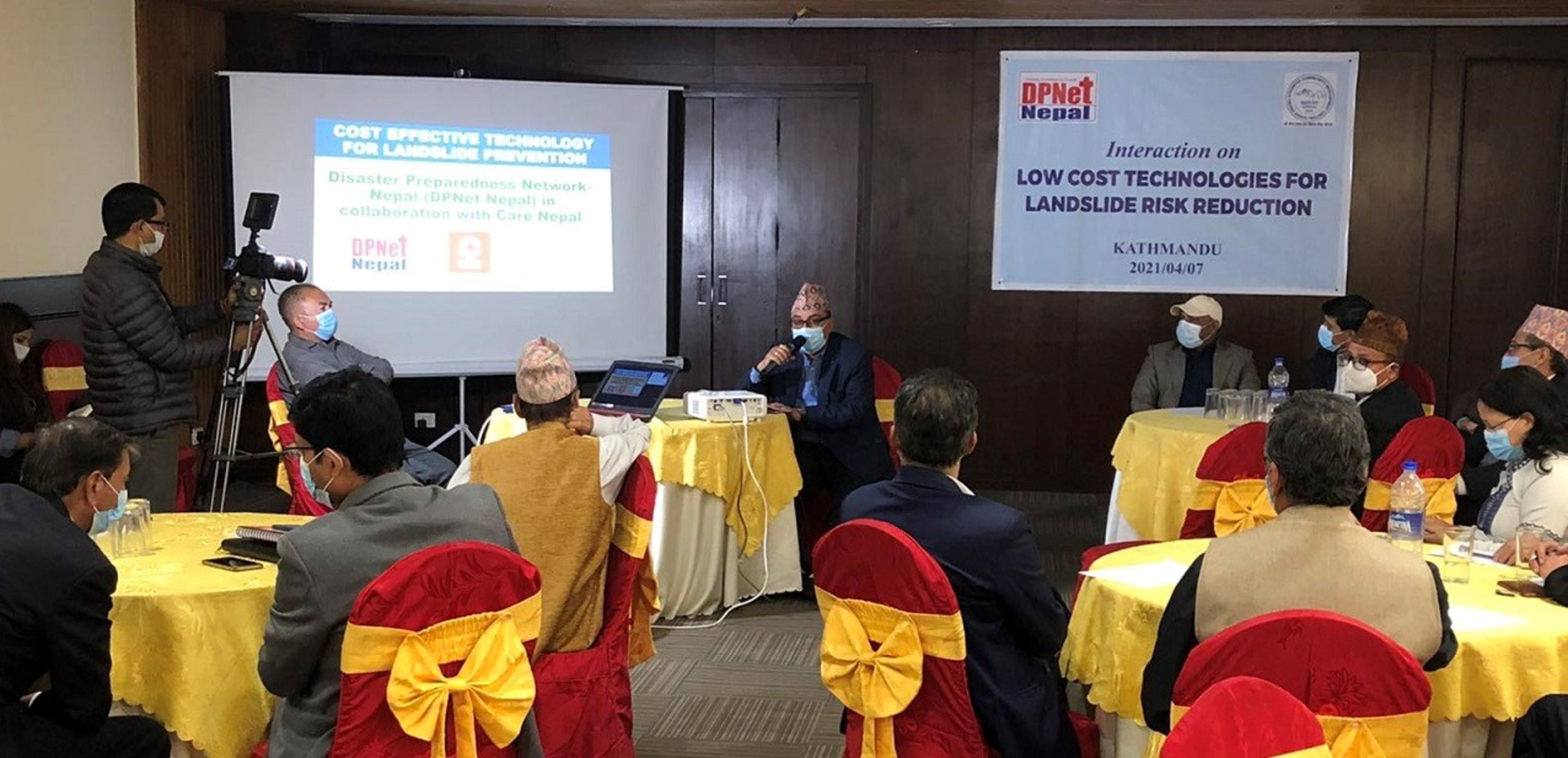 The interaction titled "Affordable Technologies for Landslide Risk Reduction" was jointly organized by Disaster Preparedness Network-Nepal (DPNet), Shree Swanra Integrated Community Development Center (SSICDC), and Care Nepal on 7th April 2021 at Indreni Foodland, Kathmandu. The program was chaired by Mr. Surya Bahadur Thapa, Chairperson of DPNet, and Dr. Raju Thapa, General Secretary of DPNet, welcomed the attendees and highlighted the program's objectives.