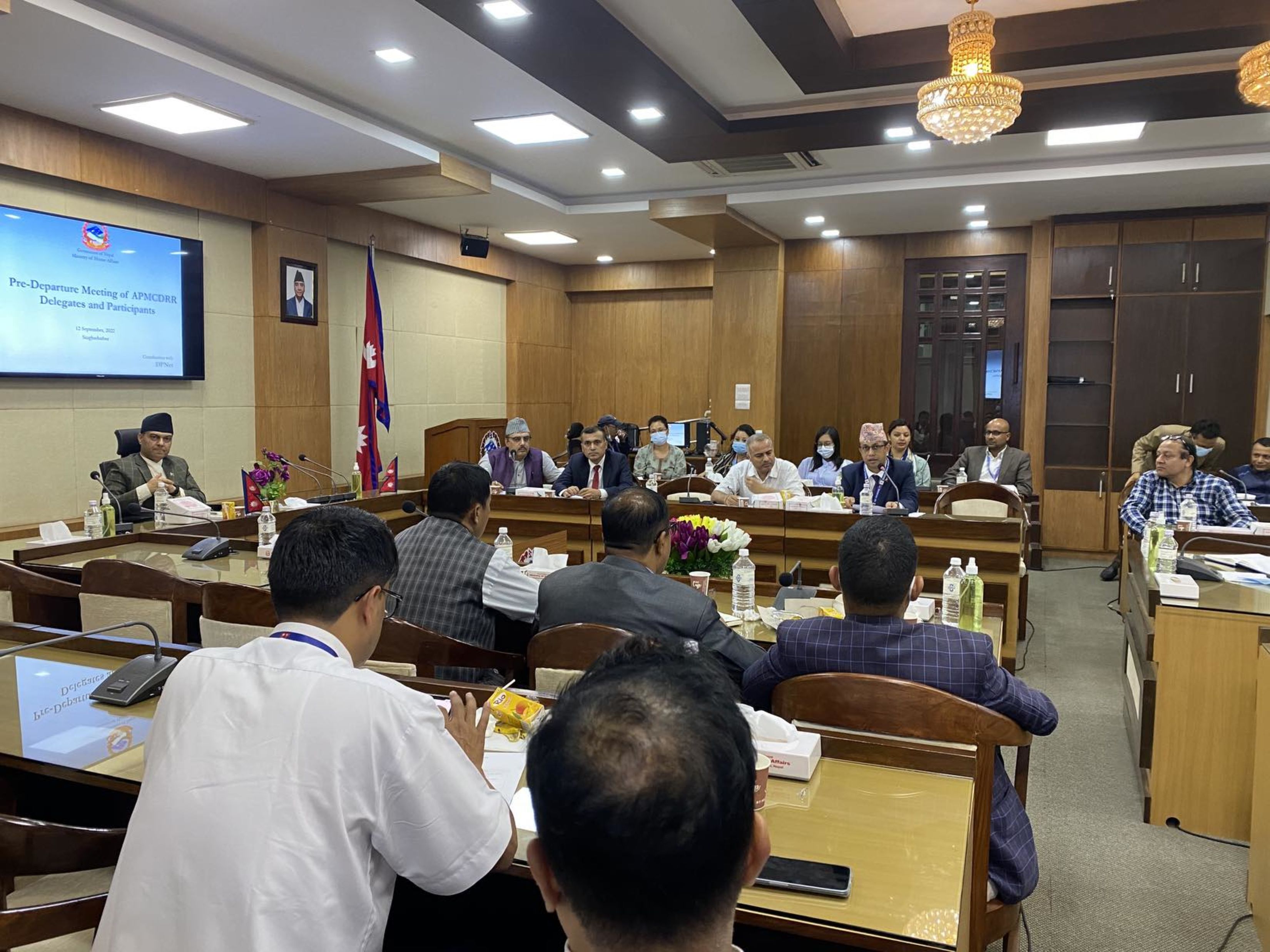 Pre-departure Meeting to participate in APMCDRR event was organized on 12th September, 2022. The meeting was chaired by the Secretary of Ministry of Home Affairs, Mr. Tek Narayan Pandey and facilitated by Chairperson of the DPNet Mr. Surya Bahadur Thapa. Around 50 prospective prospective participants of APMCDRR attended the program.