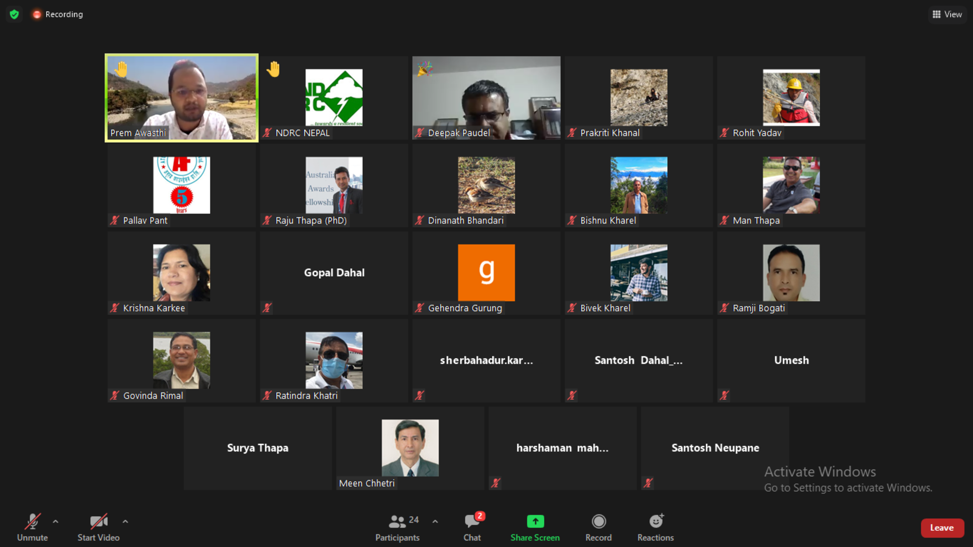 The virtual meeting with Disaster Preparedness Network Nepal (DPNet) Board Member, Advisory Committee and Technical Advisors was held on 17th May 2021. The program was initiated with welcoming notes from Chairman Mr. Surya Bahadur Thapa. Dr. Raju Thapa, General Secretary of DPNet initiated the meeting welcoming all the members inviting the Chairperson to highlight on the objectives of the program.
