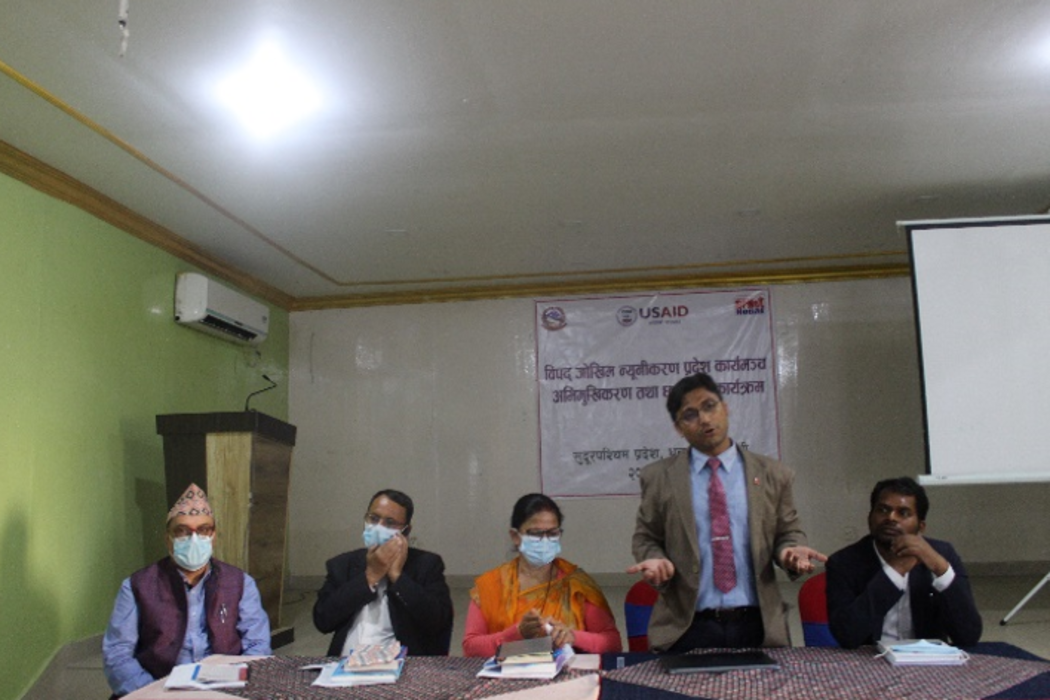 The orientation about the Local Level Disaster Risk Reduction Platform was organized by DPNet in Godawari Municipality, Kailali on Nov 2, 2021. The Chief Guest of the program was Ms. Ratna Kadayat, Deputy Mayor of Godawari Municipality. The program was chaired by Deputy Mayor. The Guests of the program were Mr. Surya Bahadur Thapa, Chairperson of DPNet, Mr. Basanta Kumar Khatri, Under Secretary, Mr. Shivaraj Joshi, Officer, Mr. Marshal Khadka, nayab subba. DRR Focal person of Godawari Municipality, Kailali facilitated the program.