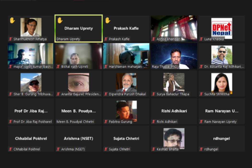 The Webinar entitled “Monsoon Disasters in Nepal: Appraisal of current state and way forward for effective preparedness and mitigation” was organized by Nepal Centre for Disaster Management (NCDM) in collaboration with National Disaster Risk Reduction Management Authority (NDRRMA) and Nepal Geological Society (NGS) on 24th September 2021. It was coordinated by Disaster Preparedness Network-Nepal (DPNet-Nepal)
