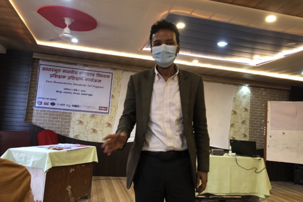 Five days long National Level Training on Core Humanitarian Standards (CHS) was organized by Ministry of Home Affairs (MoHA), Disaster Preparedness Network (DPNet); Asian Preparedness Partnership (APP); the Asian Disaster Preparedness Center (ADPC); Bill & Melinda Gates Foundation (the foundation); National Disaster Risk Reduction Centre Nepal (NDRC); and Association of International NGO’s (AIN) in Sauraha, Ratnanagar Municipality, from September 20-24 ,2021.