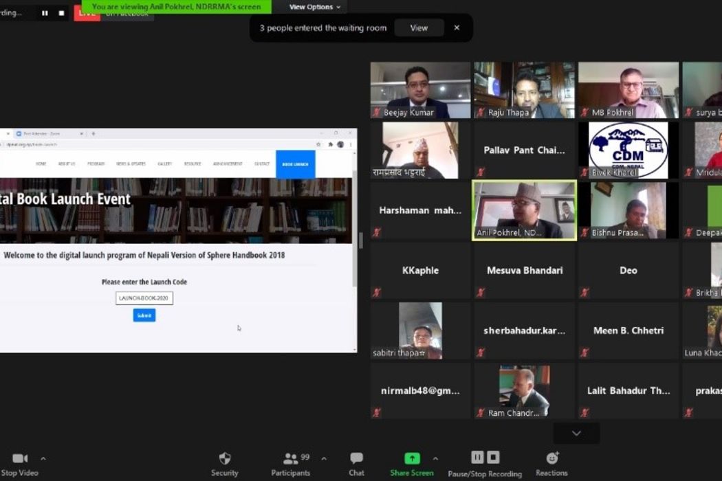 Kathmandu, Nepal - In a significant milestone for Nepal's disaster risk reduction efforts, the Nepali version of the Sphere Handbook 2018 was officially launched on 2nd December 2020. The launch program, organized by the Disaster Preparedness Network Nepal (DPNet), gathered 103 participants representing government and non-governmental agencies, with the majority being humanitarian practitioners working in the field of disaster risk reduction.