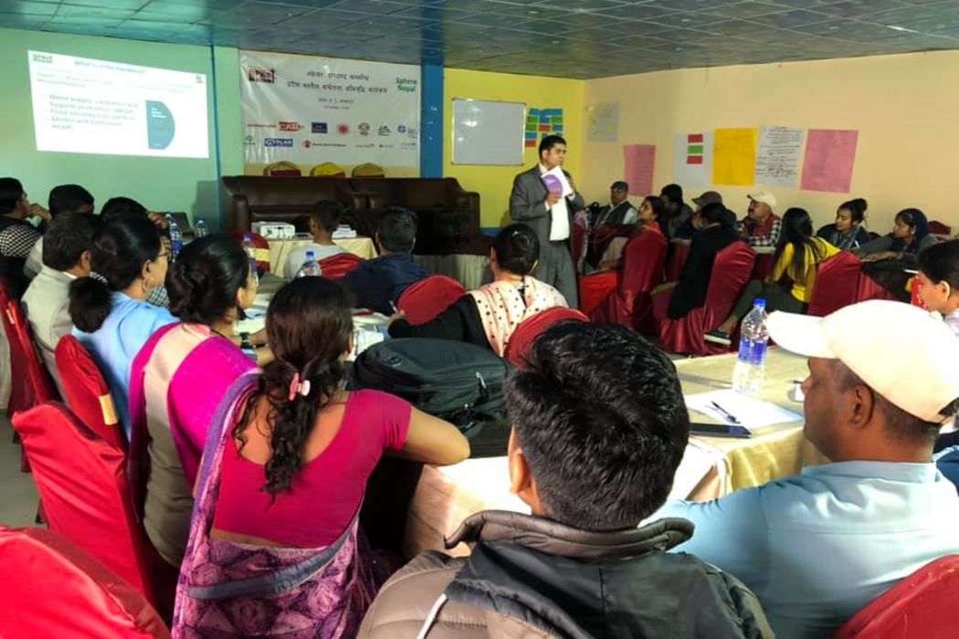 Kathmandu, 13th February 2020 - A Five-day Sphere Training of Trainers (ToT) was successfully organized by DPNet-Nepal in collaboration with Sphere Nepal and Sphere Geneva from 9th to 13th February 2020. The training, facilitated by Mr. Subhashis Roy as the Lead Facilitator received valuable contributions from Mr. Raju Thapa, General Secretary of DPNet-Nepal, Dr. Eba Pasha, co-writer of the Sphere Handbook, and Mr. Tristan Hale, Learning and Training Manager from Sphere Geneva. Mr. Anil Pokhrel, Executive Chief of the National Disaster Risk Management Authority, also took part in the event and encouraged the participants. A total of 21 participants, comprising 8 females, 13 males, and one participant from Indonesia, represented various organizations.