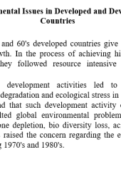 The presentation focuses on Environmental Issues in both Developed and Developing Countries. In developed nations, key concerns encompass unsustainable consumption patterns, annual per capita consumption data, emission control mechanisms, research and development initiatives, and environmentally sustainable trade policies. Additionally, the presentation explores the primary issues associated with developing countries.