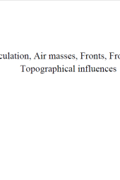 A General Circulation Model (GCM) is a climate model that mathematically simulates the planetary atmosphere or ocean's circulation. GCMs are essential for weather forecasting, climate understanding, and predicting climate change. They help study fronts, which are transition zones between different air masses. An air mass is a large body of air with consistent temperature and humidity properties in a horizontal direction. GCMs can also depict trapping mechanisms, such as the convergence of mid-density water over intertidal mudflats with denser water in the main channel, creating distinct fronts.