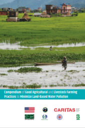 This document contains various good practices – developed by farmers, academic institutions, the government, and NGOs – that minimize water pollution from agriculture and livestock farming. Some of the good practices include the use of disease- and pest-resistant varieties, crop rotation, crop diversification, integrated pest management (IPM), biological pest controls, and soil testing, all of which can minimize the haphazard use of agrochemicals like pesticides and fertilizers. The document is designed for use by practitioners and extension specialists interested in adopting or scaling up good practices to address water pollution.