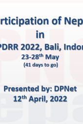 This GPDRR-2022 presentation from DPNet provides a brief on a 3-day event focused on various aspects of disaster risk reduction and climate resilience, including governance, financing, nature-based solutions, COVID-19 lessons, data challenges, urban recovery, social protection, risk-informed investment, and humanitarian context.