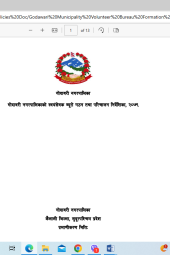 The Godawari Municipality issued this Volunteer Bureau Formation and Operation Guideline 2075 on the basis of Section 5(e), Section 7(f), and Section 11(d) of the Federal Act. Since the people of the local community are the first responders to any disaster, the role of local volunteers is indispensable to make disaster management effective even in the case of a lack of skilled manpower at the local level in preparedness, disaster response, and disaster recovery activities, sufficient public awareness as well as lack of financial and material resources. Therefore, this document provides a guideline for the formation of a volunteer bureau, its operation, and the mobilization of volunteers in case of emergency in the Godawari Municipality.