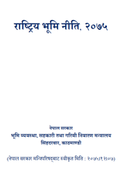 This National Land Act published by the Ministry of Land Management, Cooperatives, and Poverty Alleviation provides information on the past efforts, present context of Land use, future plans, and objectives of the Act, organizational structure guidelines, and legal provisions, the financial aspect, monitoring and evaluation, and the use and modification of the Act as per need. The Act provides a base for the equitable distribution of benefits obtained from land and its resources which is crucial for the overall development of the nation. Land acquisition and its systematic development, ensuring the security of land rights, promoting sustainable agriculture, reaching remote areas with infrastructure development, ensuring food security, conserving the environment, minimizing the adverse effects of disasters, reducing poverty, and enhancing the living standards of rural and urban communities are the primary objectives of the National Land Act, 2019.
