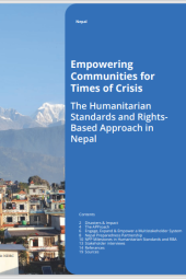 This document is an impact case study of the humanitarian standards and right-based approach applied in Nepal. The document outlines the Disasters and their impacts, explains in brief the Engage, Expand & Empower a Multi-Stakeholder System, the roles and actions of Nepal Preparedness Partnership and its milestones along with the stakeholder interviews as a review of DRM efforts and community empowerment for Crisis.