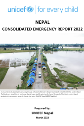 This document is a comprehensive report on UNICEF Nepal's humanitarian response activities in 2022. It details their efforts to tackle the challenges posed by COVID-19, natural disasters, and disease outbreaks. Despite a significant decrease in COVID-19 cases compared to 2021, Nepal faced severe humanitarian needs due to monsoon flooding, landslides, an earthquake in Doti District, and outbreaks of cholera and dengue. UNICEF provided life-saving support in WASH, child protection, health, and education, reaching over 61,000 people, including 22,000 children, across 23 districts. While funding gaps affected some responses, thematic funding enabled UNICEF to offer essential services to vulnerable populations. The report highlights the need for ongoing collaboration to achieve sustainable development and ensure no child is left behind.