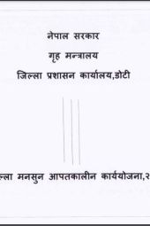 The Emergency Action Plan for Doti District, 2022 outlines comprehensive strategies for search, rescue, and coordination led by the District Administration Office and the Chief District Officer. It includes identifying flood and landslide-prone settlements, preparing and implementing search and rescue plans with the necessary equipment, and maintaining preparedness at the District Emergency Operations Center. The plan emphasizes coordination among security agencies, the Nepal Red Cross Society, and local emergency operations centers. It also details the management of temporary housing, relief distribution, and storage of humanitarian supplies. Health and nutrition responses are coordinated by the Health Office, while protection measures involve the Department of Women, Children, and Social Development. The plan ensures continuous monitoring and preparedness across all sectors and levels.