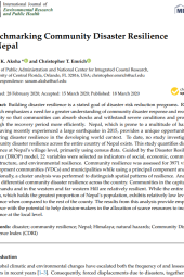 This study builds a village/municipality-level Community Disaster Resilience Index using 22 indicators (guided by the DROP model) and PCA across 3,971 local units. Finds higher resilience around Kathmandu and parts of the western hills, and lower resilience across much of the Tarai, evidence useful for targeting DRR investments.