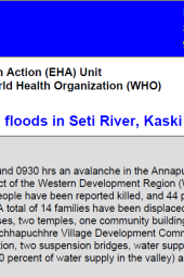 This sitrep prepared by Emergency and Humanitarian Action (EHA) Unit is about the situation of Nepal after the Avalanche and floods in Seti River, in the Kaski district of Nepal.