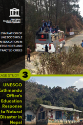 This case study evaluates UNESCO's response to the 2015 earthquakes in Nepal within the broader context of its role in education during emergencies. Focusing on UNESCO's Kathmandu Office, the study underscores the immediate engagement in the education response despite budget and resource constraints. While the office demonstrated efficiency and relevance in its limited-scale response, the success was attributed more to ad hoc factors and individual initiatives than institutional commitment. Challenges faced by the office revealed the absence of a cohesive organizational strategy for education in emergencies and specific frameworks for emergency response.