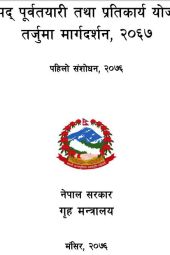 It's the amended version of the Disaster Preparedness and Response Plan (DPRP) guideline 2067. The guideline aims to facilitate the DPRP formulation process of Province, District and Local Level. This guidance adheres to legal and policy frameworks, including the Disaster Risk Reduction and Management Act 2039, Local Governance Act 2055, National Policy on Disaster Risk Reduction 2066, and National Strategy for Disaster Risk Reduction 2075. The legal provisions mandate the implementation of disaster preparedness and response plans at the national, provincial, and local levels.