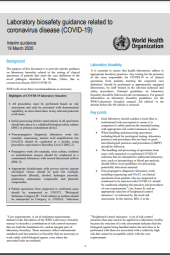 This is the interim guideline for laboratory biosafety related to coronavirus disease (COVID-19). This document aims to offer temporary instructions regarding laboratory biosafety in the testing of clinical specimens from patients meeting the case definition of the newly identified pathogen in Wuhan, China, known as coronavirus disease 2019 (COVID-19).