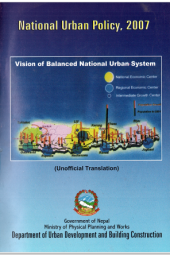 The National Urban Policy of 2007 (2064 B.S) outlines a comprehensive framework for urban development in Nepal. Emphasizing the importance of sustainable urbanization, the policy addresses key issues such as infrastructure development, land use planning, housing, and environmental sustainability. It seeks to create well-planned and resilient urban areas that accommodate the growing population while promoting social inclusion and economic growth. The policy envisions integrated governance mechanisms and collaboration between different levels of government to ensure effective implementation. Overall, the National Urban Policy of 2007 provides a strategic roadmap for fostering balanced and sustainable urban development in Nepal.