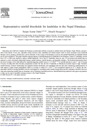 This paper describes regional aspects of rainfall thresholds for landslides in the Himalaya. Some 677 landslides occurring from 1951 to 2006 were studied to analyze rainfall thresholds. Out of the 677 landslides, however, only 193 associated with rainfall data were analyzed to yield a threshold relationship between rainfall intensity, rainfall duration, and landslide initiation. In this paper the role of antecedent rainfall in causing landslides was also investigated by considering daily rainfall during failure and the cumulative rainfall to discover at what point antecedent rainfall plays an important role in Himalayan landslide processes. Rainfall thresholds presented in this paper are generalized so they can be used in landslide warning systems in the Nepal Himalaya.