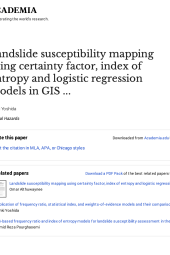 In this study, landslide susceptibility assessment of Mugling-Narayanghat road and its surrounding area has been made using bivariate (certainty factor and index of entropy) and multivariate (logistic regression) models. At first, a landslide inventory map was prepared using earlier reports and aerial photographs as well as by carrying out a field survey. As a result, 321 landslides were mapped and out of which 241 (75 %) were randomly selected for building landslide susceptibility models, while the remaining 80 (25 %) were used for validating the models. The effectiveness of landslide susceptibility assessment using GIS and statistics is based on the appropriate selection of the factors which play a dominant role in slope stability. In this case study, the following landslide conditioning factors were evaluated: slope gradient; slope aspect; altitude; plan curvature; lithology; land use; distance from faults, rivers, and roads; topographic wetness index; stream power index; and sediment transport index.