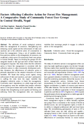 This study shows that the collective action in forest fire management is consistent with the collective actions in other community development activities. However, the effectiveness of collective action is primarily dependent on the complex interaction of various variables. Further, it clarifies that strong social capital, strong enforcement of rules and sanctions, and users’ participation in crafting the rules were the major variables that strengthen collective action in forest fire management.