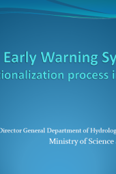 The presentation focuses on the Institutionalization process of Flood Early Warning Systems in Nepal. It discusses the context of flooding in Nepal, highlighting the Flood Management Approaches, as well as the Monitoring and dissemination methods.