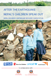 This report prepared collaboratively by Save the Children, World Vision International, Plan International and UNICEF reflects the views and voices of children affected by the twin earthquakes in Nepal, who were consulted in May and June 2015. The report further indicates the necessity of not only prioritizing the more tangible requirements such as shelter, but also the psychosocial and protection needs of children and their families. It also provides recommendations from the children on how they would like their communities to be rebuilt and the roles they saw for themselves in this process.
