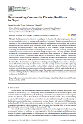 This study quantifies disaster resilience at Nepal’s village level, primarily using census data. Guided by the Disaster Resilience of Place (DROP) model, 22 variables were selected as indicators of social, economic, community, infrastructure, and environmental resilience.